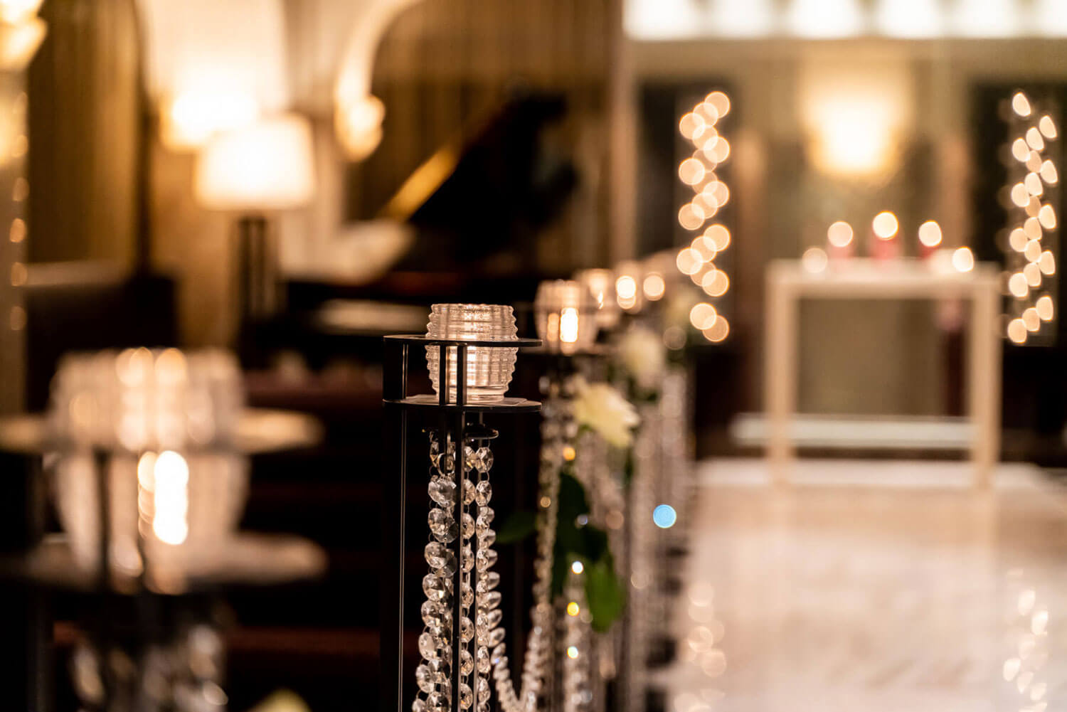 優しく揺れるキャンドルの灯り 大理石に響くピアノの音